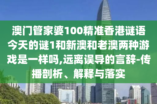 澳門管家婆100精準香港謎語今天的謎1和新澳和老澳兩種游戲是一樣嗎,遠離誤導的言辭-傳播剖析、解釋與落實