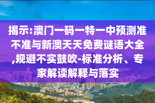 揭示:澳門一碼一特一中預測準不準與新澳天天免費謎語大全,規避不實鼓吹-標準分析、專家解讀解釋與落實