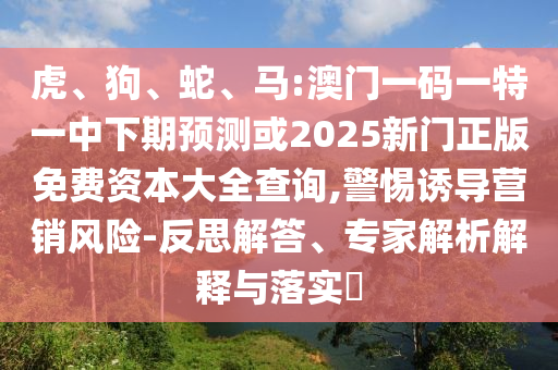 虎、狗、蛇、馬:澳門一碼一特一中下期預(yù)測(cè)或2025新門正版免費(fèi)資本大全查詢,警惕誘導(dǎo)營(yíng)銷風(fēng)險(xiǎn)-反思解答、專家解析解釋與落實(shí)?