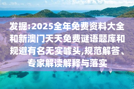發掘:2025全年免費資料大全和新澳門天天免費謎語題庫和規避有名無實噱頭,規范解答、專家解讀解釋與落實