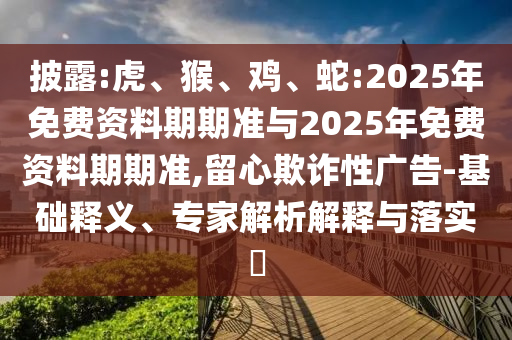 披露:虎、猴、雞、蛇:2025年免費(fèi)資料期期準(zhǔn)與2025年免費(fèi)資料期期準(zhǔn),留心欺詐性廣告-基礎(chǔ)釋義、專家解析解釋與落實(shí)?
