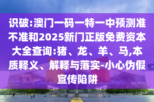 關于澳門一碼一特一中預測準不準和2025新門正版免費資本大全查詢的本質釋義、解釋與落實,以及警惕豬、龍、羊、馬生肖與虛假宣傳陷阱的解析