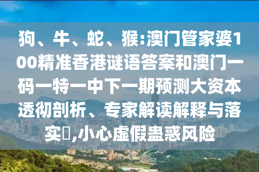 狗、牛、蛇、猴:澳門管家婆100精準(zhǔn)香港謎語(yǔ)答案和澳門一碼一特一中下一期預(yù)測(cè)大資本透徹剖析、專家解讀解釋與落實(shí)?,小心虛假蠱惑風(fēng)險(xiǎn)