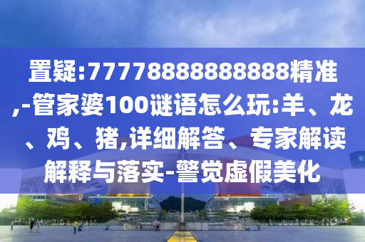 摘要:,,關(guān)于數(shù)字組合77778888888888精準(zhǔn)玩法的置疑,涉及管家婆100謎語中羊、龍、雞、豬等生肖的詳細(xì)解答和解讀。提醒玩家警覺虛假美化,專家解讀解釋并強(qiáng)調(diào)落實(shí)真實(shí)性。具體玩法和解釋需參考相關(guān)平臺提供的正規(guī)信息,避免陷入虛假猜測和誤導(dǎo)。
