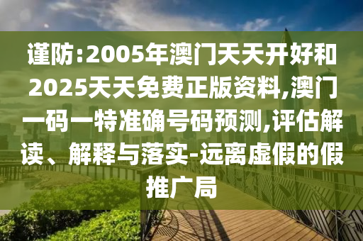 謹防:2005年澳門天天開好和2025天天免費正版資料,澳門一碼一特準確號碼預測,評估解讀、解釋與落實-遠離虛假的假推廣局