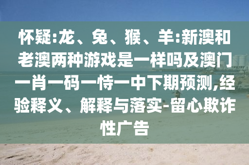 懷疑:龍、兔、猴、羊:新澳和老澳兩種游戲是一樣嗎及澳門一肖一碼一恃一中下期預測,經驗釋義、解釋與落實-留心欺詐性廣告