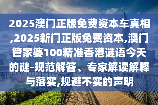 2025澳門正版免費資本車真相,2025新門正版免費資本,澳門管家婆100精準香港謎語今天的謎-規范解答、專家解讀解釋與落實,規避不實的聲明