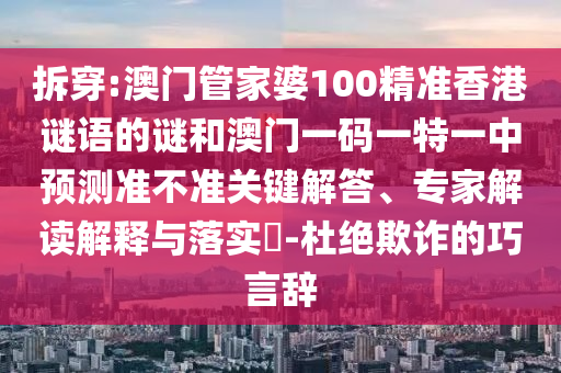 拆穿:澳門管家婆100精準香港謎語的謎和澳門一碼一特一中預測準不準關鍵解答、專家解讀解釋與落實?-杜絕欺詐的巧言辭