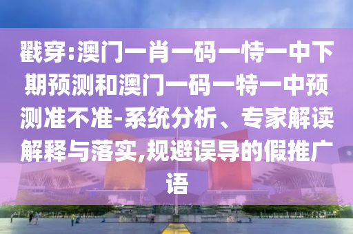 戳穿:澳門一肖一碼一恃一中下期預測和澳門一碼一特一中預測準不準-系統分析、專家解讀解釋與落實,規避誤導的假推廣語