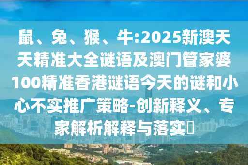 鼠、兔、猴、牛:2025新澳天天精準大全謎語及澳門管家婆100精準香港謎語今天的謎和小心不實推廣策略-創新釋義、專家解析解釋與落實?