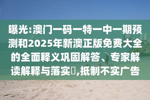 關于曝光澳門一碼一特一中一期預測和2025年新澳正版免費大全的全面釋義與抵制不實廣告——鞏固解答、專家解讀解釋與落實