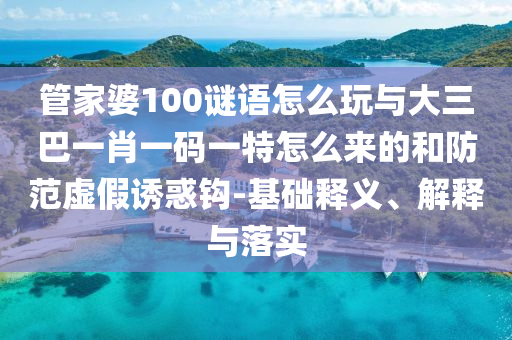 管家婆100謎語怎么玩”與“大三巴一肖一碼一特怎么來的”這兩個(gè)關(guān)鍵詞,我將從全面釋義、專家解讀與落實(shí)、警惕虛假宣傳三個(gè)方面進(jìn)行解析描述。