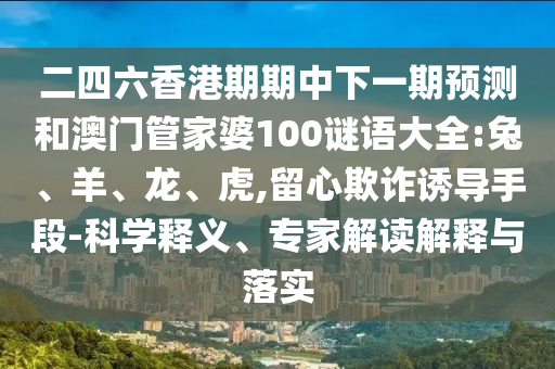 二四六香港期期中下一期預(yù)測(cè)和澳門管家婆100謎語(yǔ)大全:兔、羊、龍、虎”的科學(xué)釋義、專家解讀解釋與落實(shí)以及留心欺詐誘導(dǎo)手段的解析