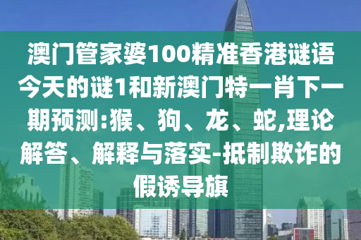 摘要:今日澳門管家婆提供的精準(zhǔn)香港謎語為“謎1”,涉及猴、狗、龍、蛇四個生肖的預(yù)測。需警惕假誘導(dǎo)旗,抵制欺詐行為。對于此類預(yù)測,建議理性對待,不盲目相信,同時注意防范相關(guān)風(fēng)險。理論解答與解釋需結(jié)合實際,落實需謹慎。