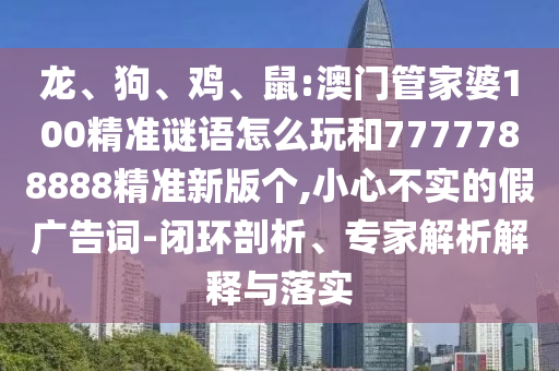 龍、狗、雞、鼠:澳門管家婆100精準謎語怎么玩和7777788888精準新版個,小心不實的假廣告詞-閉環剖析、專家解析解釋與落實