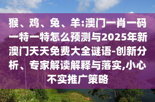 猴、雞、兔、羊:澳門一肖一碼一特一特怎么預測與2025年新澳門天天免費大全謎語-創新分析、專家解讀解釋與落實,小心不實推廣策略