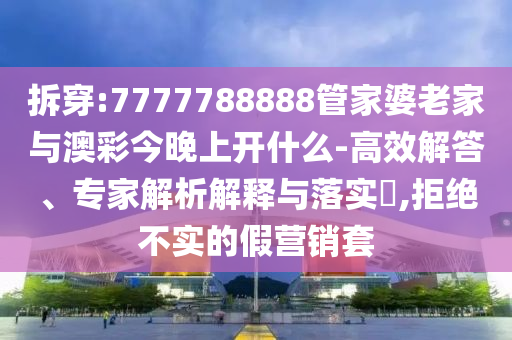 關于拆穿“7777788888管家婆老家與澳彩今晚上開什么”的高效解答、專家解析解釋與落實,以及拒絕不實的假營銷套的內容,我將從全面釋義、專家解讀與落實、警惕虛假宣傳三個方面進行解析。