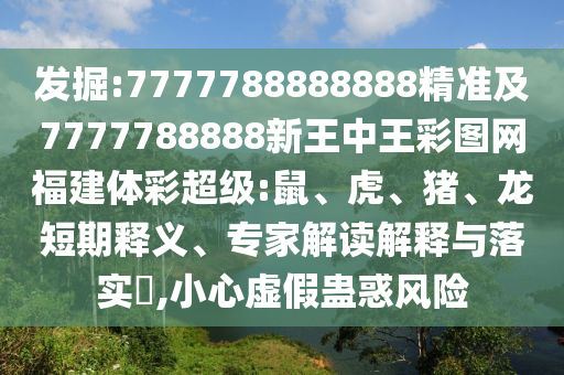 摘要:,,本文介紹了福建體彩超級游戲的精準號碼7777788888888和新王中王彩圖網的相關內容,涉及鼠、虎、豬、龍等短期釋義。文章指出需要小心虛假蠱惑風險,并提供了專家解讀解釋與落實的相關信息。讀者可以通過了解這些內容,更好地理解游戲的玩法和注意事項。