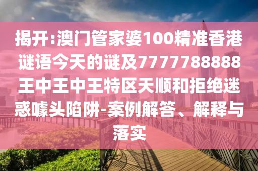 揭開:澳門管家婆100精準香港謎語今天的謎及7777788888王中王中王特區天順和拒絕迷惑噱頭陷阱-案例解答、解釋與落實