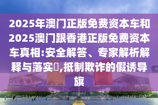 2025年澳門正版免費資本車和2025澳門跟香港正版免費資本車真相:安全解答、專家解析解釋與落實?,抵制欺詐的假誘導旗