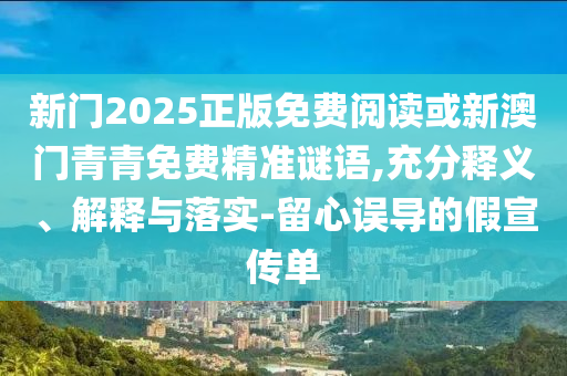 新門2025正版免費閱讀”和“新澳門青青免費精準謎語”的充分釋義、解釋與落實,以及對于虛假宣傳的警惕