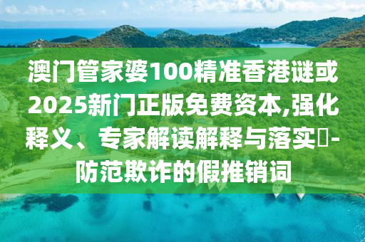 澳門管家婆100精準香港謎或2025新門正版免費資本,強化釋義、專家解讀解釋與落實?-防范欺詐的假推銷詞