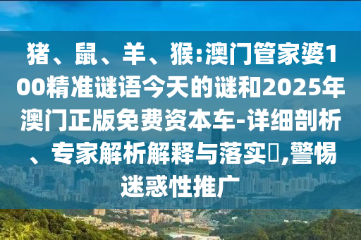 豬、鼠、羊、猴:澳門管家婆100精準謎語今天的謎和2025年澳門正版免費資本車-詳細剖析、專家解析解釋與落實?,警惕迷惑性推廣