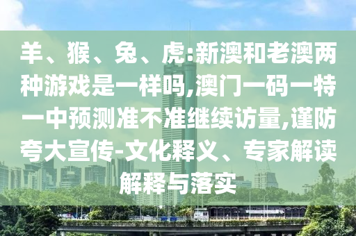 羊、猴、兔、虎:新澳和老澳兩種游戲是一樣嗎,澳門一碼一特一中預測準不準繼續訪量,謹防夸大宣傳-文化釋義、專家解讀解釋與落實