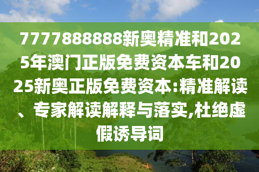 7777888888新奧精準和2025年澳門正版免費資本車和2025新奧正版免費資本:精準解讀、專家解讀解釋與落實,杜絕虛假誘導詞