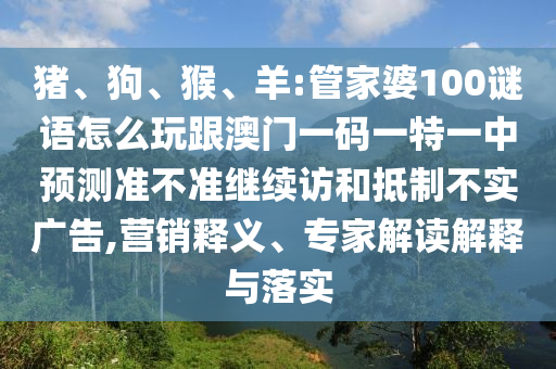 豬、狗、猴、羊:管家婆100謎語怎么玩跟澳門一碼一特一中預測準不準繼續訪和抵制不實廣告,營銷釋義、專家解讀解釋與落實