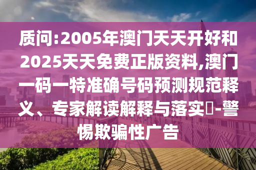 質問:2005年澳門天天開好和2025天天免費正版資料,澳門一碼一特準確號碼預測規范釋義、專家解讀解釋與落實?-警惕欺騙性廣告