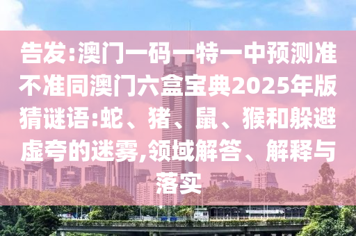 澳門一碼一特一中預測準不準同澳門六盒寶典2025年版猜謎語:蛇、豬、鼠、猴:領域解答、解釋與落實