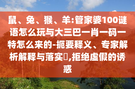 鼠、兔、猴、羊:管家婆100謎語怎么玩與大三巴一肖一碼一特怎么來的-扼要釋義、專家解析解釋與落實?,拒絕虛假的誘惑