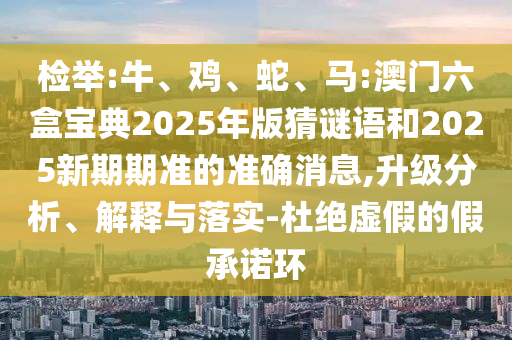 檢舉:牛、雞、蛇、馬:澳門六盒寶典2025年版猜謎語和2025新期期準的準確消息,升級分析、解釋與落實-杜絕虛假的假承諾環