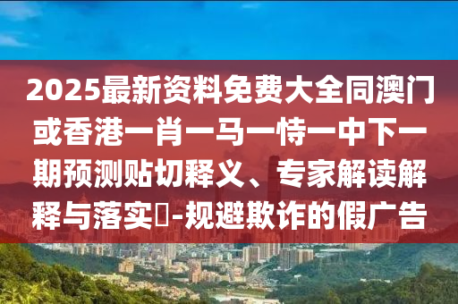 2025最新資料免費大全同澳門或香港一肖一馬一恃一中下一期預測貼切釋義、專家解讀解釋與落實?-規避欺詐的假廣告