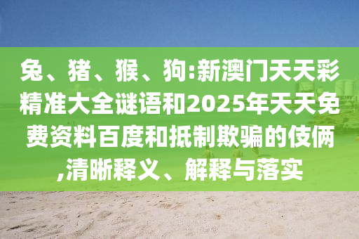 兔、豬、猴、狗:新澳門天天彩精準大全謎語和2025年天天免費資料百度的清晰釋義、解釋與落實