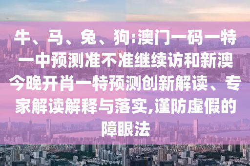 牛、馬、兔、狗:澳門(mén)一碼一特一中預(yù)測(cè)準(zhǔn)不準(zhǔn)繼續(xù)訪和新澳今晚開(kāi)肖一特預(yù)測(cè)創(chuàng)新解讀、專(zhuān)家解讀解釋與落實(shí),謹(jǐn)防虛假的障眼法