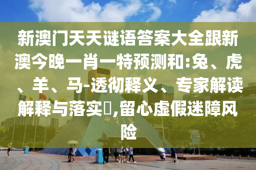 關于新澳門天天謎語答案大全、新澳今晚一肖一特預測以及兔、虎、羊、馬等相關內容的透徹釋義、專家解讀解釋與落實,以及需要警惕虛假迷障風險的文章。