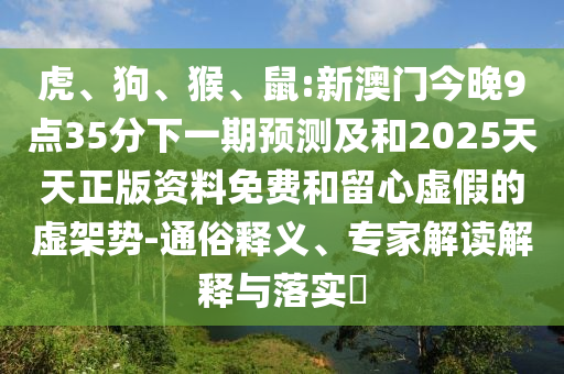 虎、狗、猴、鼠:新澳門今晚9點35分下一期預測及和2025天天正版資料免費:通俗釋義、專家解讀解釋與落實?
