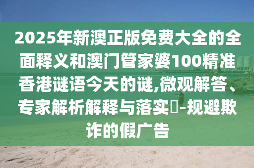 關(guān)于澳門管家婆2025年新澳正版免費(fèi)大全的全面釋義、澳門管家婆100精準(zhǔn)香港謎語(yǔ)今天的微觀解答、專家解析解釋與落實(shí)以及規(guī)避欺詐的假?gòu)V告等內(nèi)容,以下是對(duì)這些關(guān)鍵詞的詳細(xì)解釋和提醒公眾警惕虛假宣傳的文章。