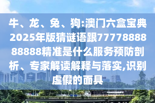 牛、龍、兔、狗:澳門六盒寶典2025年版猜謎語跟7777888888888精準是什么服務:預防剖析、專家解讀解釋與落實
