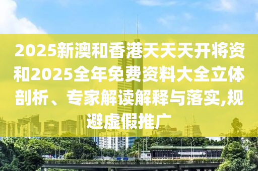 2025新澳和香港天天天開將資和2025全年免費資料大全立體剖析、專家解讀解釋與落實,規避虛假推廣