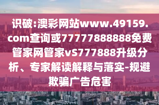 摘要:本文揭露了一個澳彩網(wǎng)站(www.49159.com)及其免費管家網(wǎng)的相關(guān)信息。文章指出,通過升級分析與專家解讀解釋,用戶應(yīng)警惕此類網(wǎng)站可能存在的欺騙廣告危害。提醒用戶謹(jǐn)慎識別網(wǎng)站真實性,避免陷入網(wǎng)絡(luò)娛樂或其他欺詐行為的風(fēng)險。強調(diào)落實防范措施的重要性,以保護個人權(quán)益不受侵害。