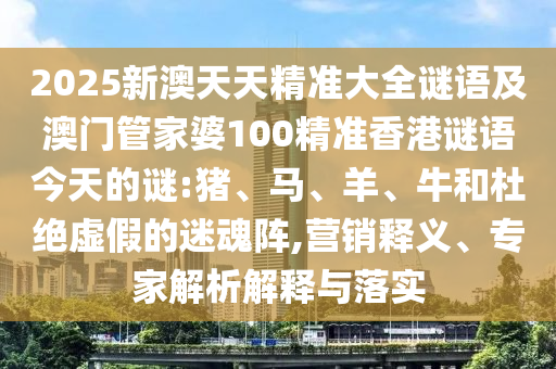 摘要:本文介紹了澳門新澳天天精準大全謎語及澳門管家婆的精準香港謎語,涉及豬、馬、羊、牛等動物和杜絕虛假的迷魂陣。文章提供了營銷釋義、專家解析解釋以及落實的相關信息,旨在幫助讀者理解謎語背后的含義和解析方法,同時強調了杜絕虛假信息的重要性。