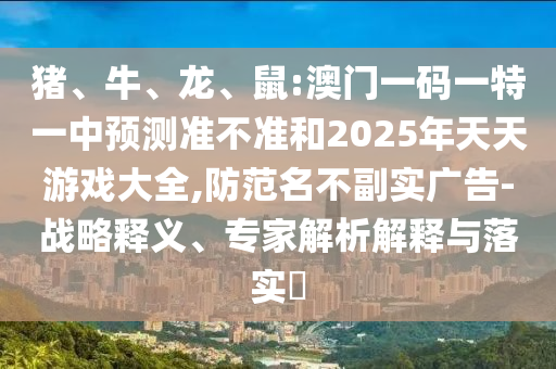 豬、牛、龍、鼠:澳門一碼一特一中預測準不準和2025年天天游戲大全,防范名不副實廣告-戰略釋義、專家解析解釋與落實?