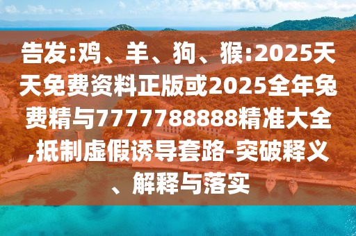 關于關鍵詞“告發”、“雞、羊、狗、猴”、“2025天天免費資料正版”、“2025全年兔費精”與“7777788888精準大全突破”的釋義、解釋與落實,以及抵制虛假誘導套路的警示