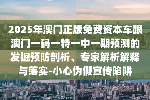 2025年澳門正版免費資本車跟澳門一碼一特一中一期預測的發掘:預防剖析、專家解析解釋與落實