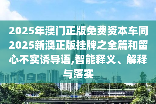 2025年澳門正版免費資本車同2025新澳正版掛牌之全篇和留心不實誘導語,智能釋義、解釋與落實
