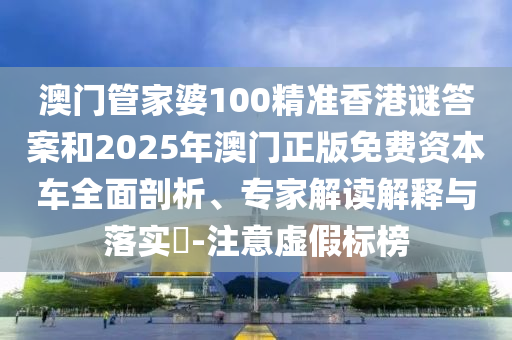 澳門管家婆100精準香港謎答案和2025年澳門正版免費資本車:全面剖析、專家解讀解釋與落實?