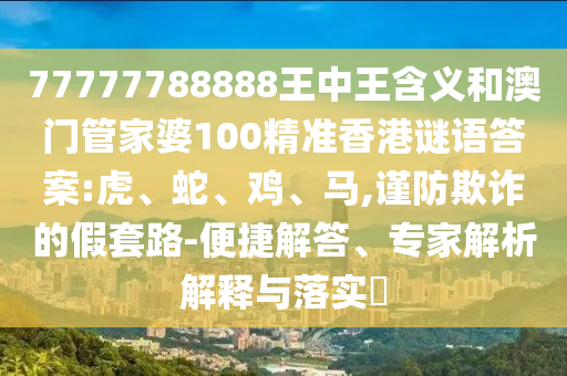 77777788888王中王含義和澳門管家婆100精準香港謎語答案:虎、蛇、雞、馬,謹防欺詐的假套路-便捷解答、專家解析解釋與落實?